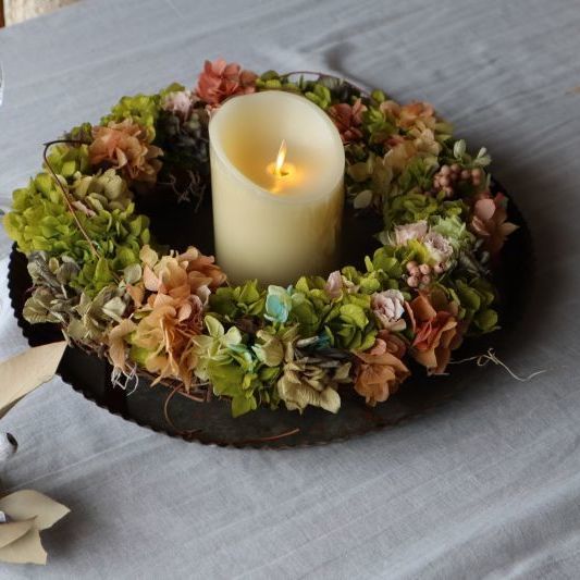 ホワイトのリースも白い壁にかざっていただいても素敵かなと思っています。