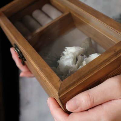 温かみのある木とプリザーブドフラワーで作られたジュエリーボックス